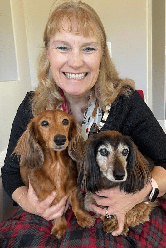 Please join me in welcoming author C.B. Wilson. Cozy pet mystery fans are sure to enjoy Dachshund to Death, book 7 in the Barkview Mystery Series. C.B.’s author photo brightened my day. The inspiration behind this delightful series is clear.