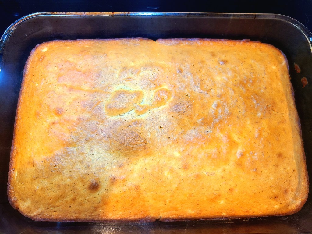 - Preheat the oven to 375 degrees F (190 degrees C). Grease and flour a 9×13-inch dish.